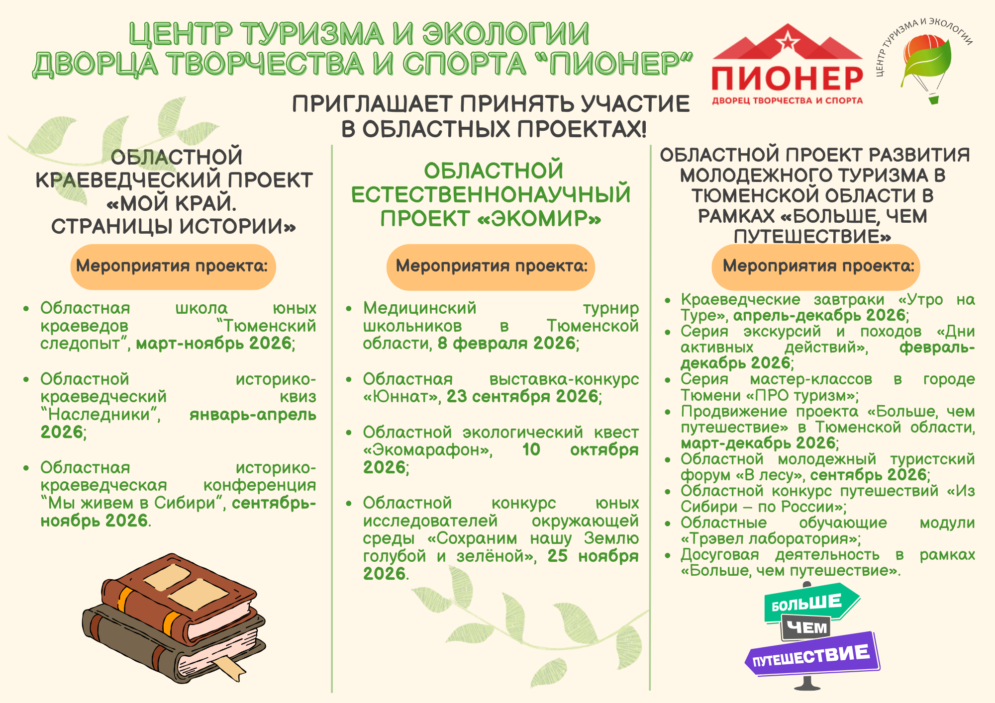 - Областная школа юных краеведов "Тюменский следопыт", март-ноябрь 2026;