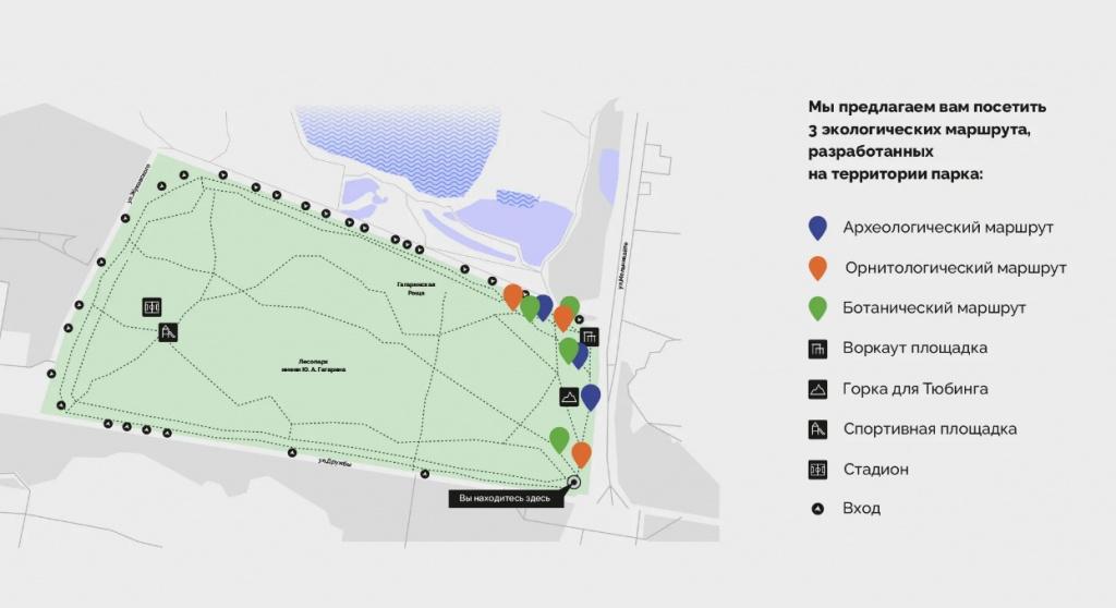 Сеть экотуристических маршрутов «ИНТЕРПАРК» в Лесопарке им. Ю.А. Гагарина находится в Ленинском АО г. Тюмени. Маршрут разработан ТООДД «ЧИР» и АНО ЭПЦ «Экоцентр».