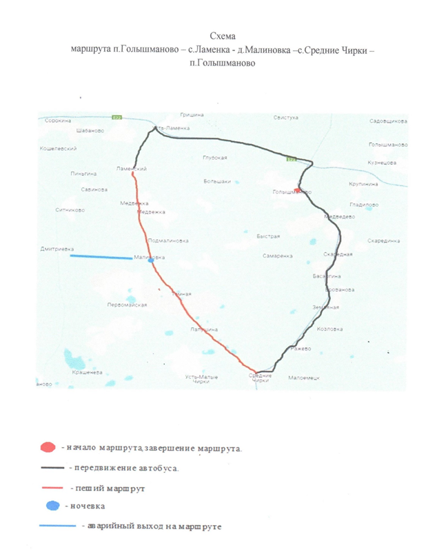 Маршрут продолжительностью 118 км - 76 км. на автобусе, 42 км пешком, требует начальной туристской подготовки. Приобретение навыков мастерства туристов, практические занятия на местности, сплочение команды, знакомство с родным краем. Возможны посещения в охотничье хозяйство в д.Малиновке Голышмановского района Тюменской области