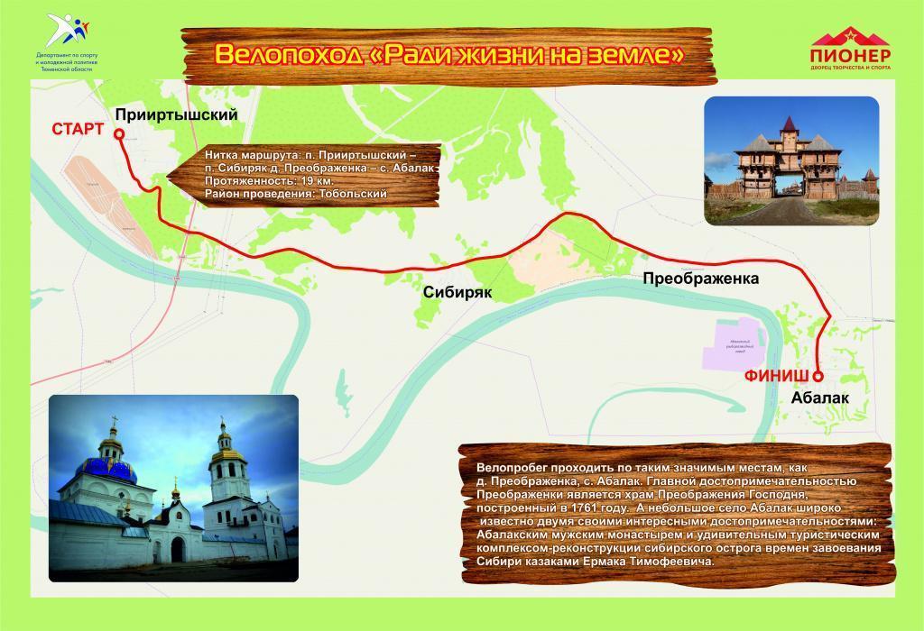 Среди достопримечательностей, с которыми знакомятся участники можно отметить православный храм д. Преображенка, а также историческое место Искер вблизи ее окрестностей, Свято-Знаменский мужской монастырь в с. Абалак.