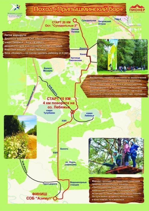 2. СНТ «Лесная поляна» – озеро Лебяжье – Турбаза «Азимут», разработанный для участников от 10 лет и старше.