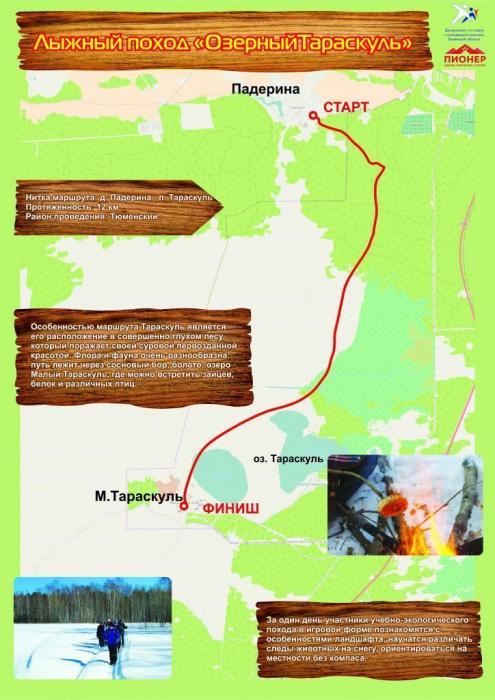 Особенностью маршрута Тараскуль является его расположение в совершенно глухом лесу, который поражает своей суровой первозданной красотой. Флора и фауна очень разнообразна: путь лежит через сосновый бор, болото, озеро Малый Тараскуль, где можно встретить зайцев, белок и различных птиц.