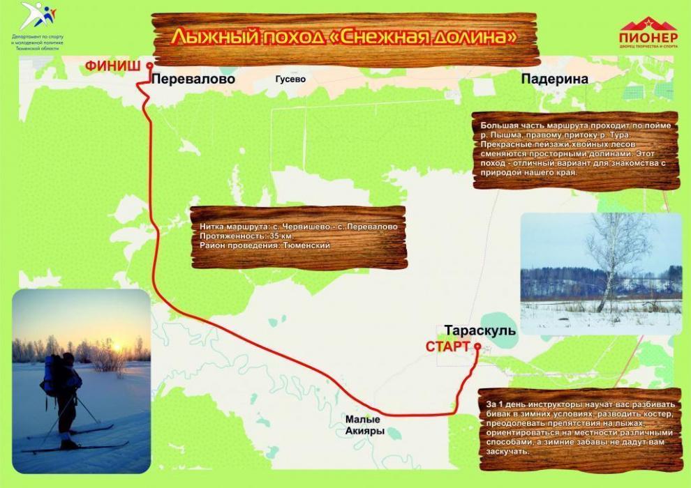 Большая часть маршрута проходит по пойме р. Пышма, правому притоку р. Тура.  Прекрасные пейзажи хвойных лесов сменяются просторными долинами. Этот поход -- отличный вариант для знакомства с природой нашего края.